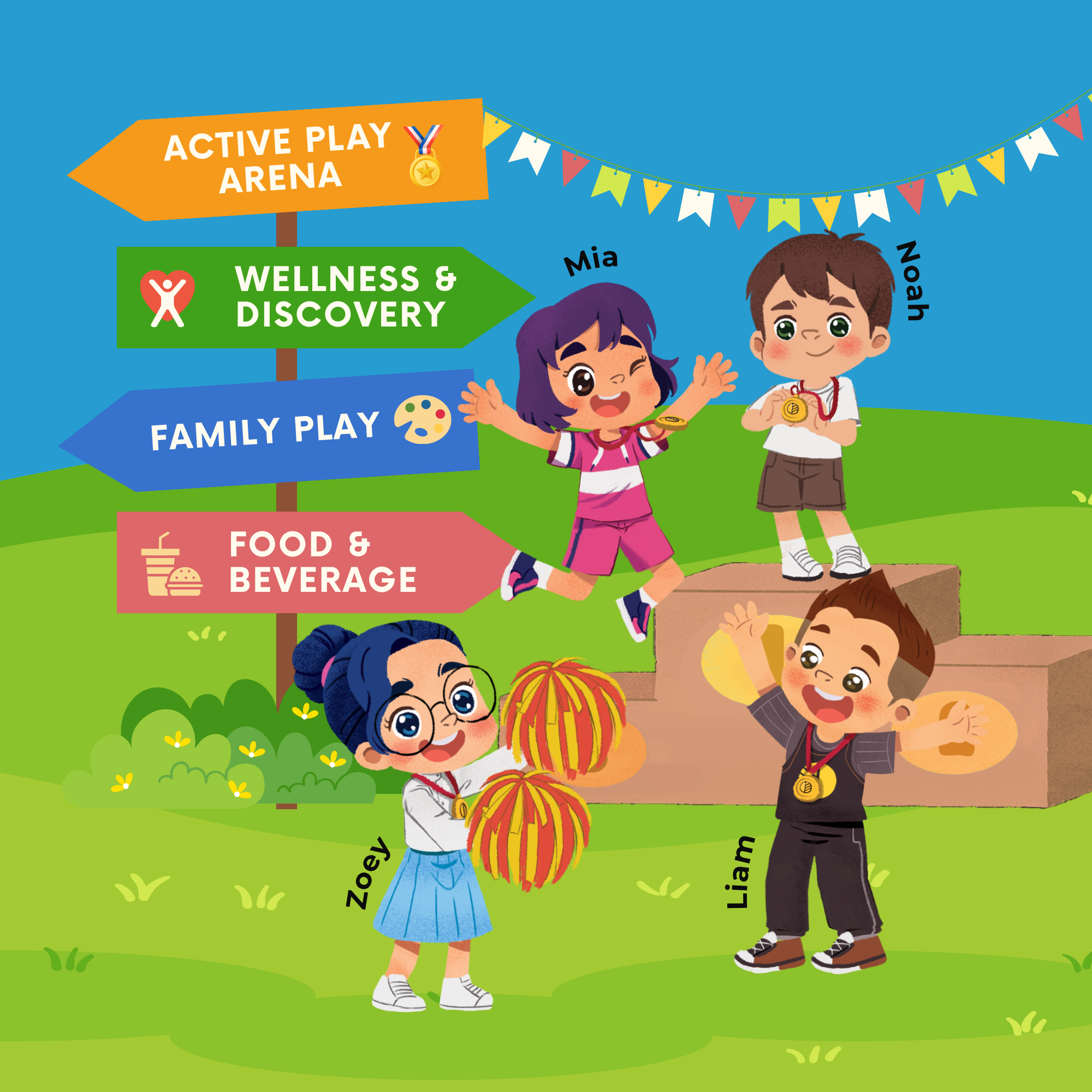 A: The race is open to kids above the height of 90cm and must be aged 12 and below. Both conditions must be met in order to participate in the Active Play Arena.