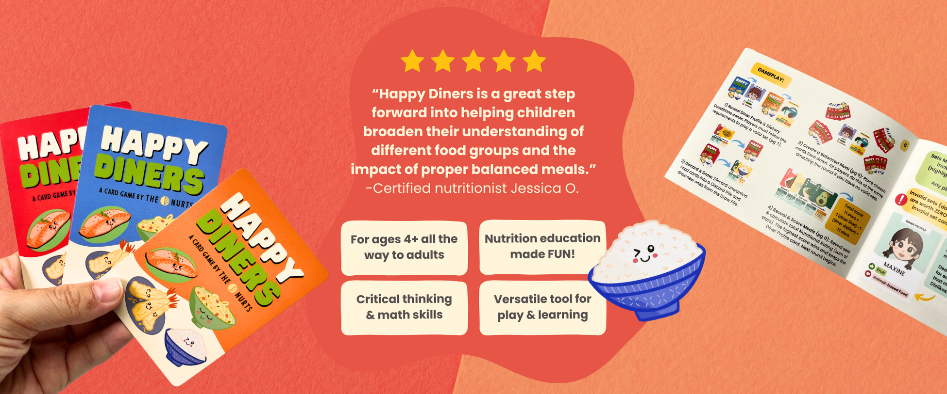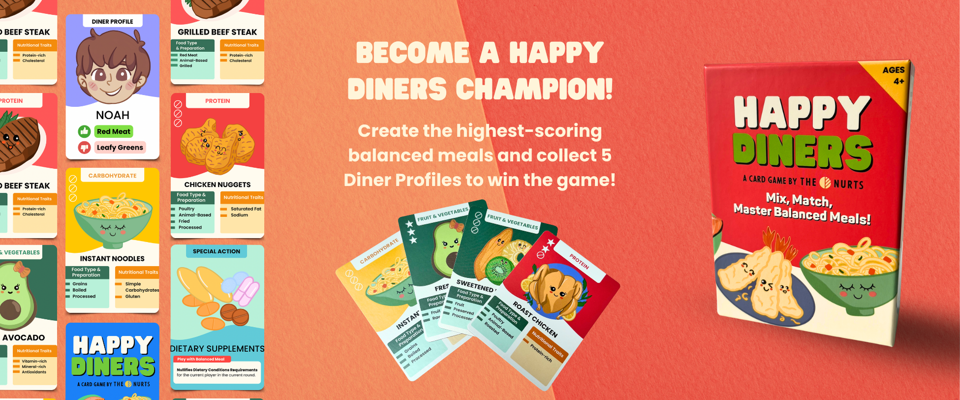 Welcome to the deliciously fun world of Happy Diners! The Nurts’ card game that turns learning about balanced meals and nutrition into a game everyone will love – no boring lectures, just pure fun! 😋