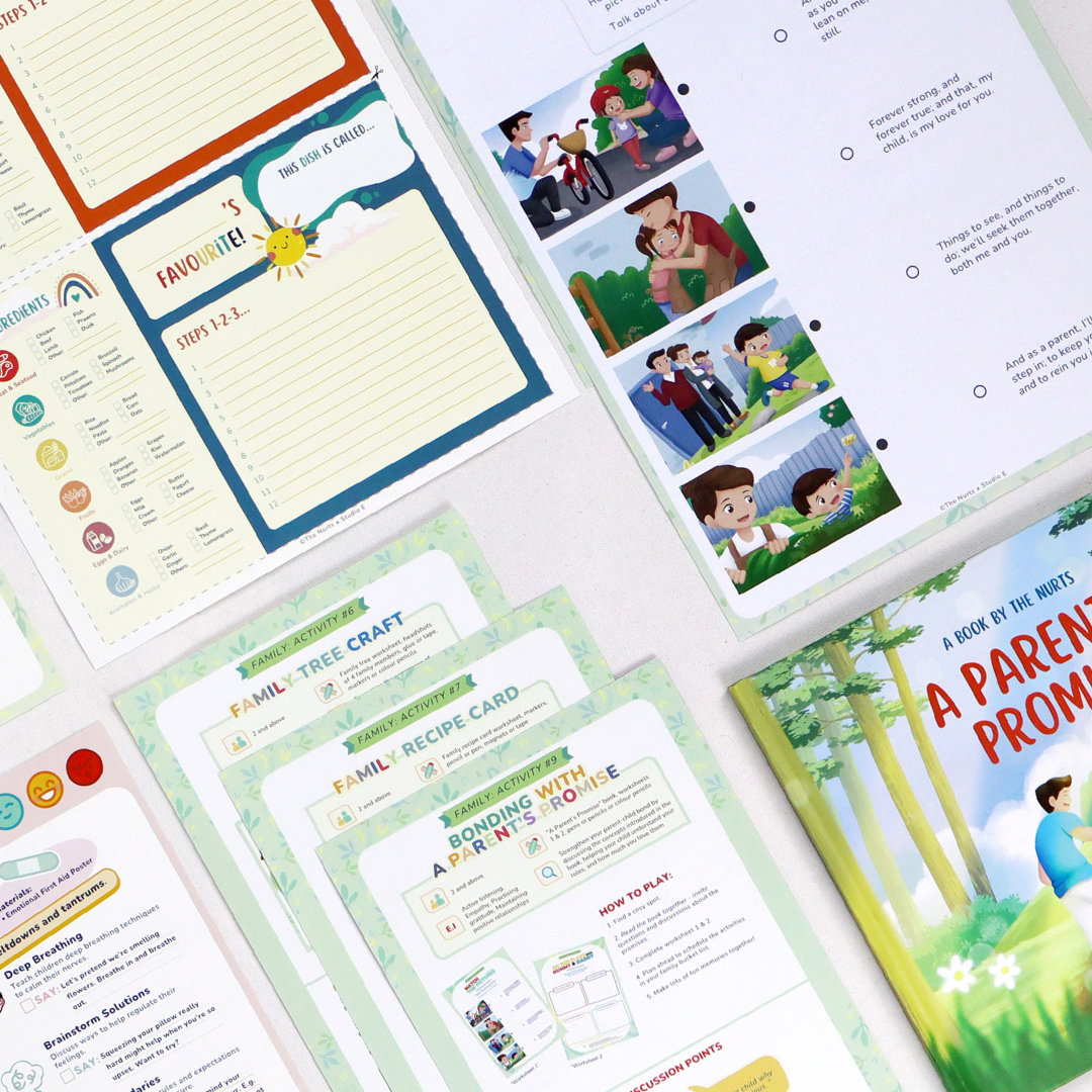 Use our family bonding book 'A Parent's Promise' and worksheets to nurture EI values such as practising gratitude and maintaining positive relationships.