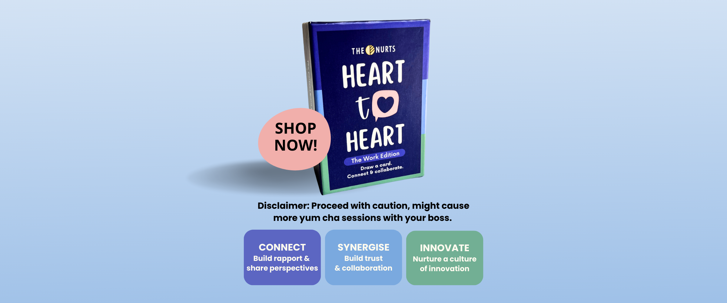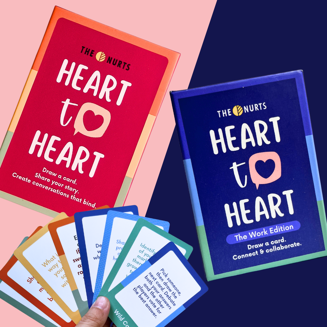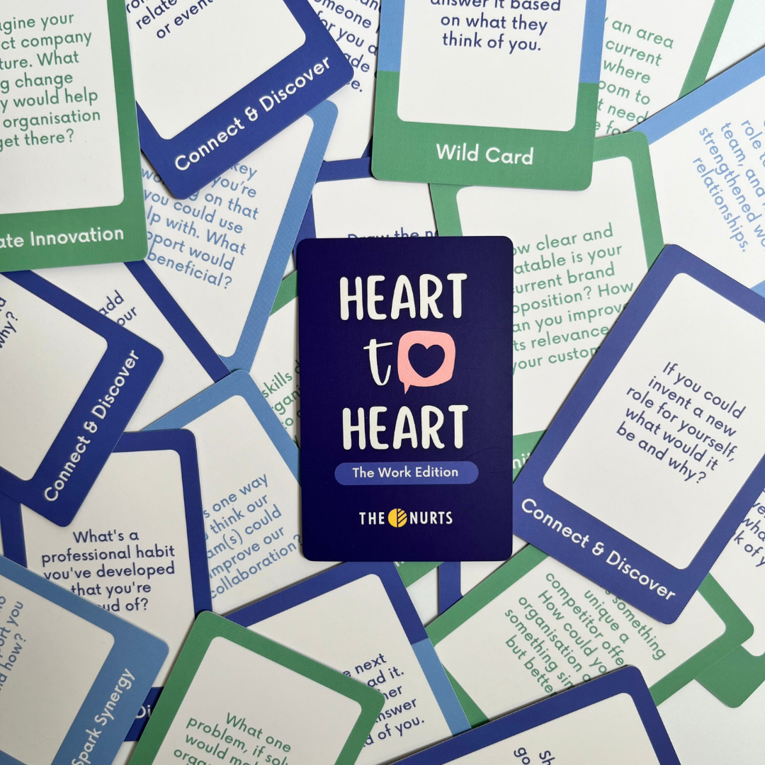Introducing our Heart-To-Heart: The Work Edition. Connect, discover and spark synergy with 120 themed prompts to bond with your team.